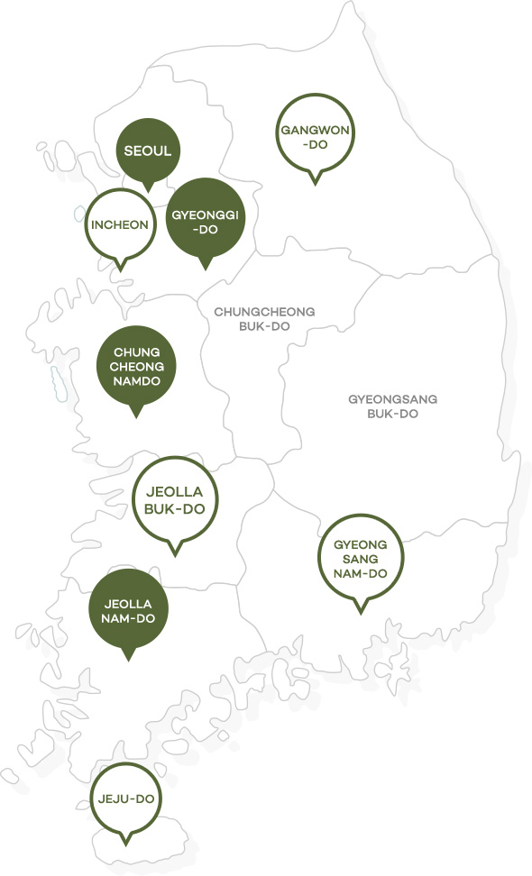 江南本店、狎鴎亭店、建大店、蘆原店、千戸店、冠岳ソウル大学店、 弥阿サゴリ店、松坡店、明洞店、木洞店、江西店、新論峴店、弘大店